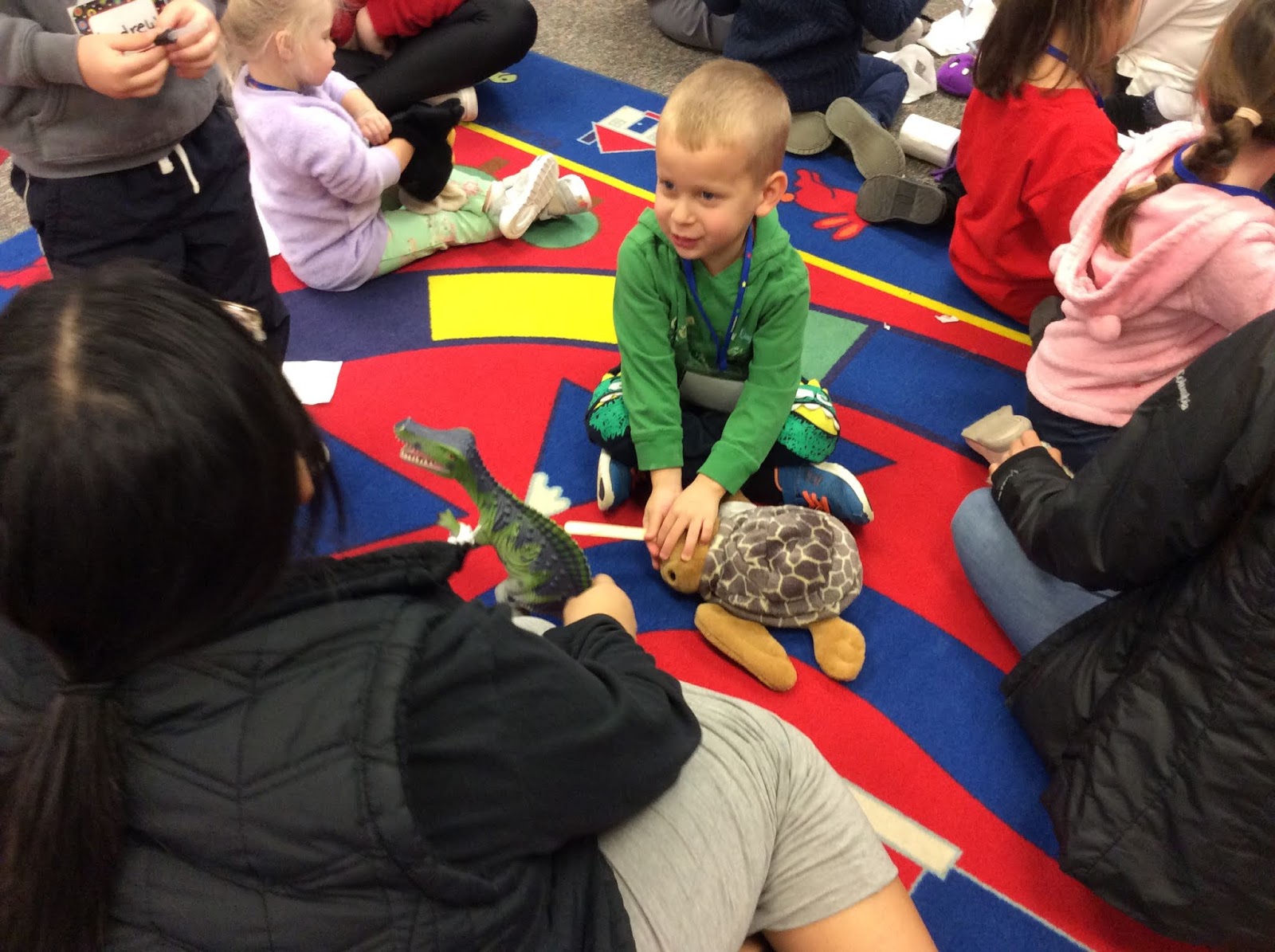 After we found all the animals in the classroom we sat down for a story about a, Very Busy Spider, which was written by Eric Carle but performed and told my one of our teachers.